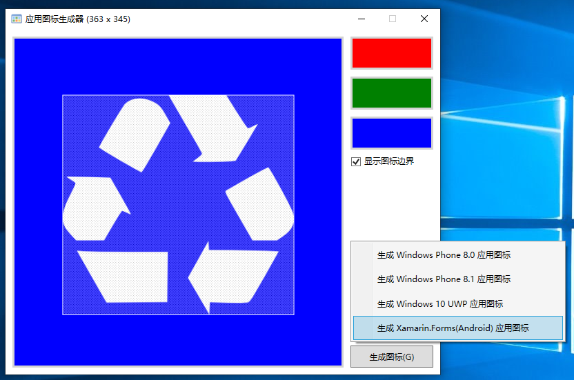 生成Windows Phone8.0 应用图标。生成Windows Phone8.1 应用图标。生成Windows 10 UWP 应用图标。生成 Xamarin.Forms(Android)应用图标。