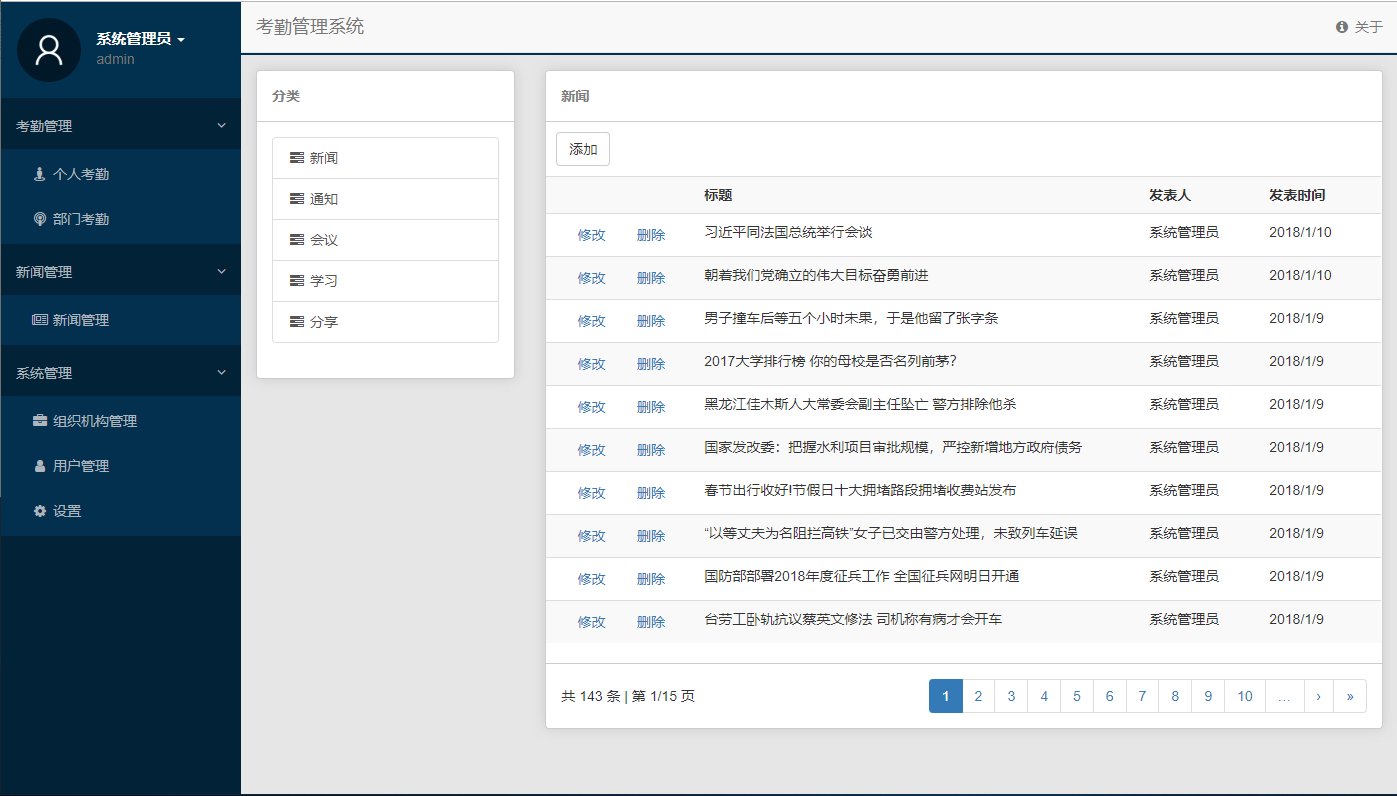 用于单位上下班打考勤、查看部门内打考勤情况,查看最新通知,限制考勤IP地址等功能。包含手机端、网页端。
