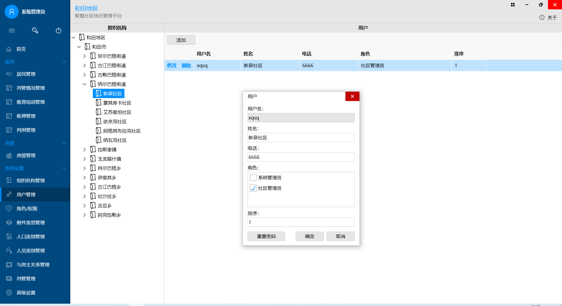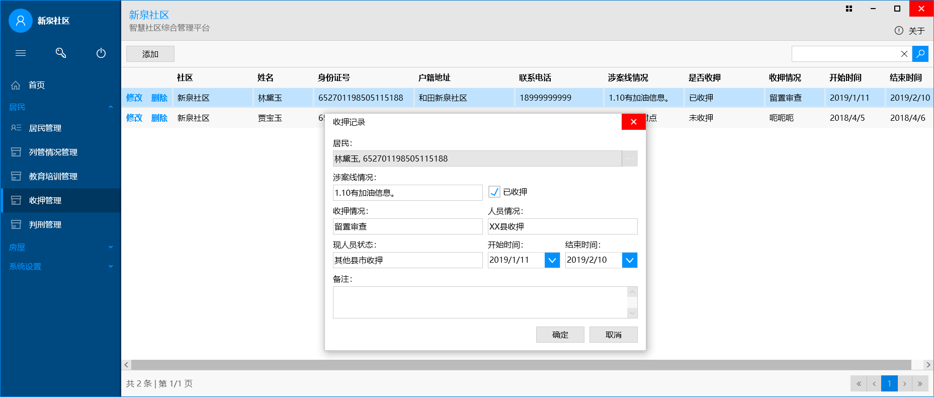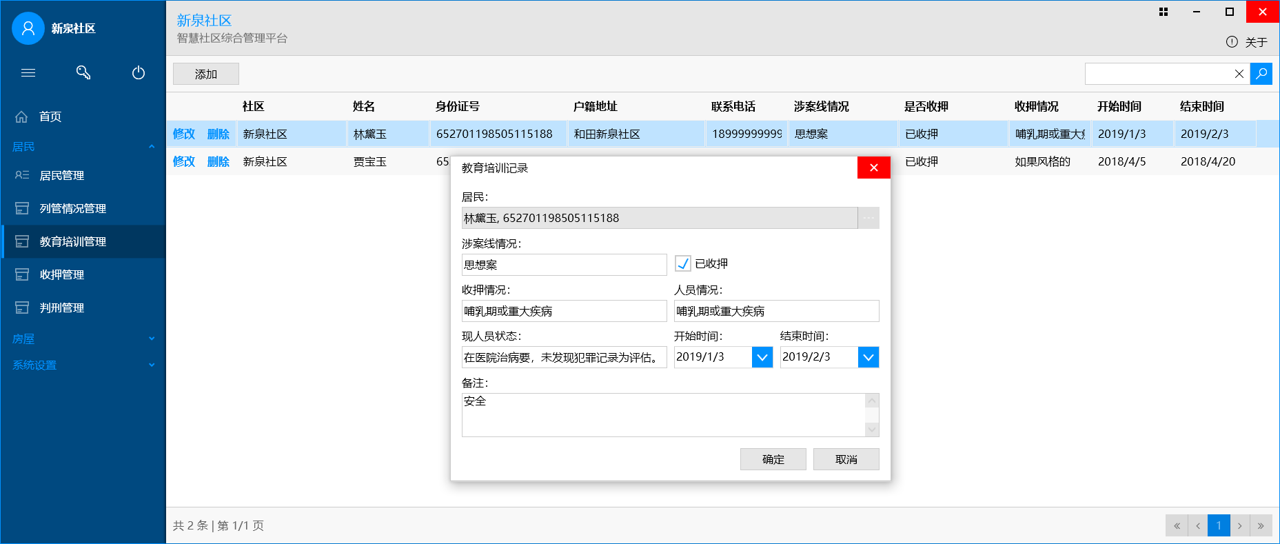 用于维护社区内房屋、居民的相关情况,居民包括:居民基本情况、列管、教育培训、收押、判刑情况等。C/S架构。