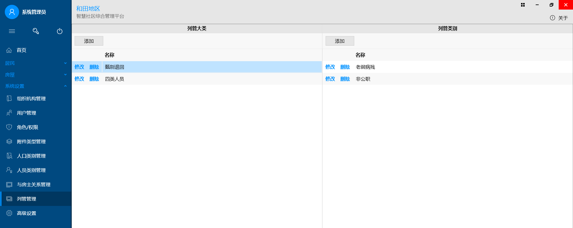 列管管理:列管大类、列管类别
