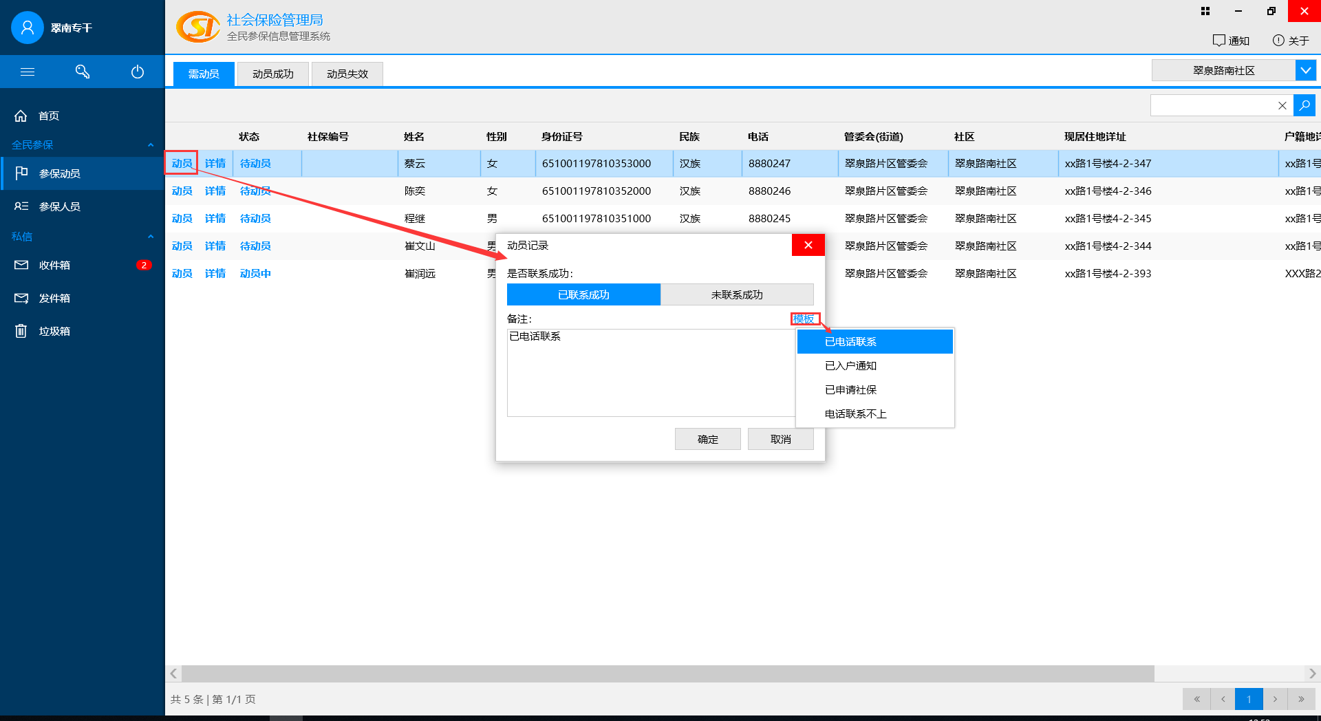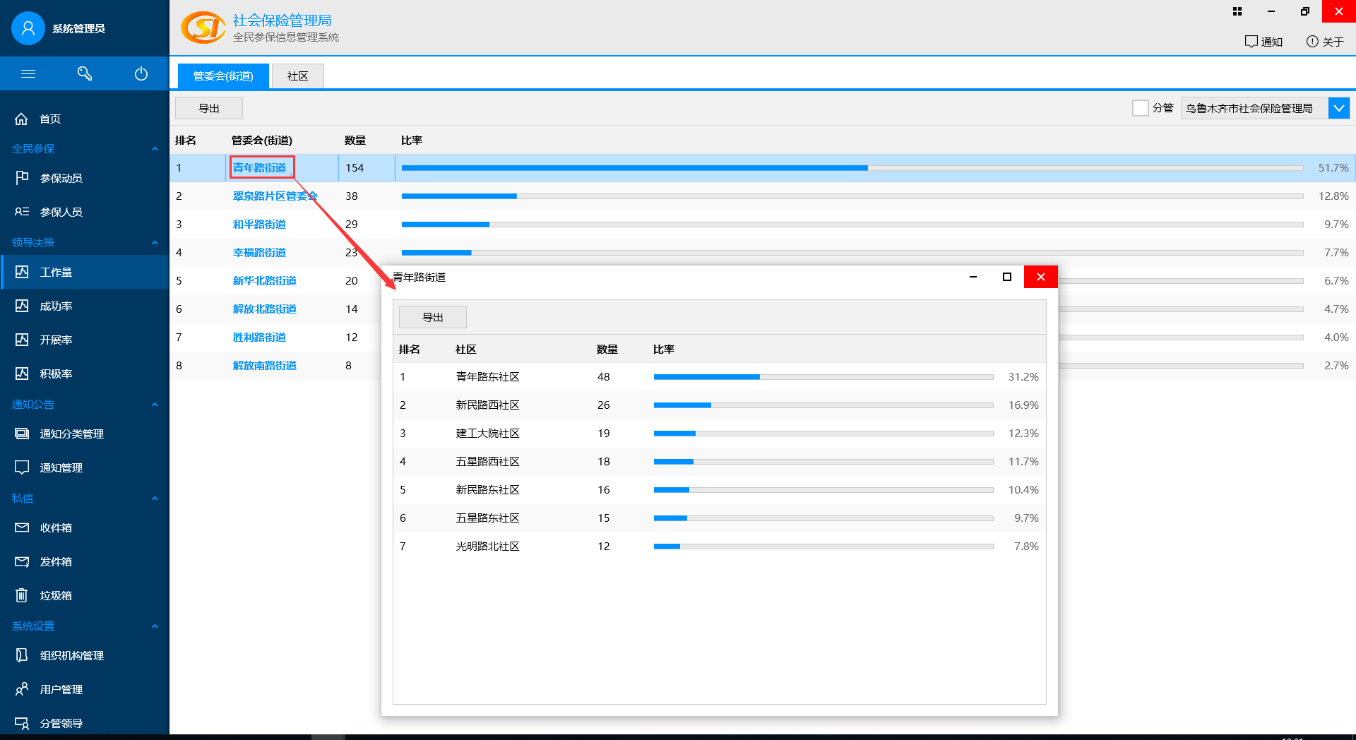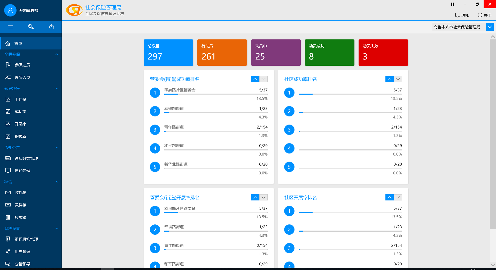 用于维护居民的参保动员情况,实时统计各个部门的参保覆盖率、积极率、成功率的信息系统。包含手机端、网页端。
