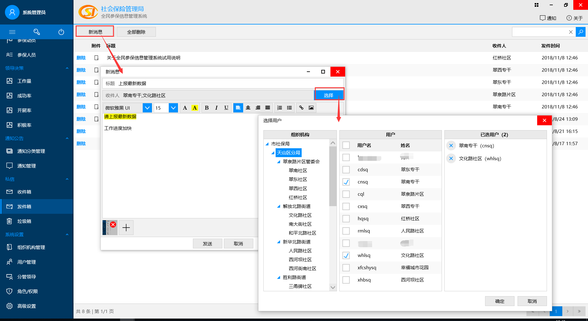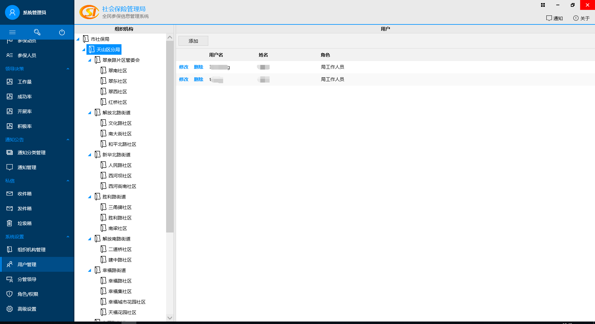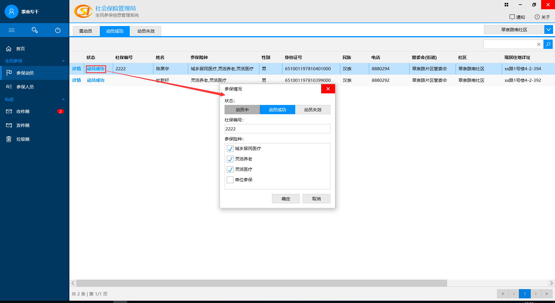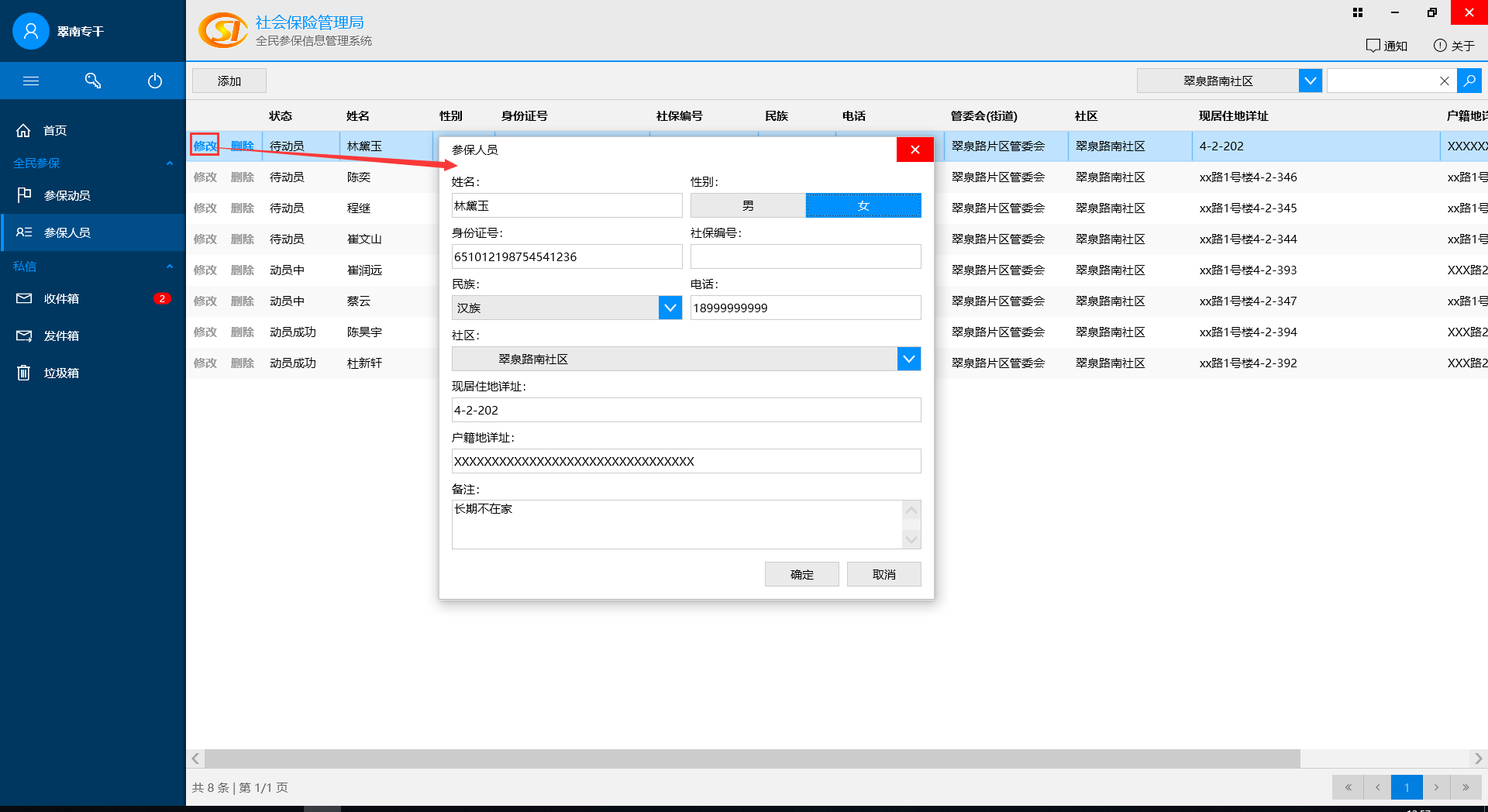 用于维护居民的参保动员情况,实时统计各个部门的参保覆盖率、积极率、成功率的信息系统。包含手机端、网页端。