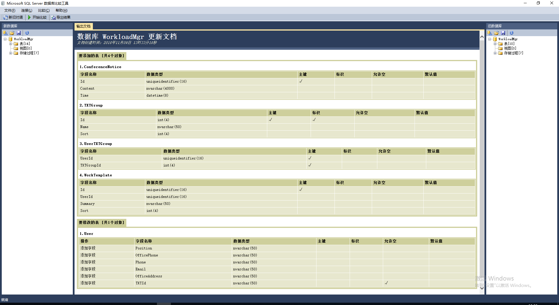 方法二:通过架构对比。打开数据库架构,进行对比