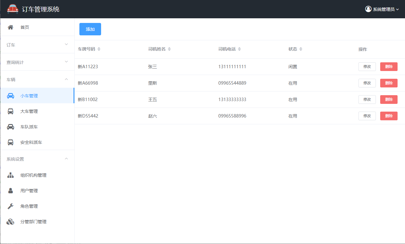 小车管理,由车队维护