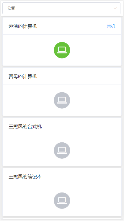 用于管理公司的员工及员工的计算机,在晚上发现没有关机的计算机,能远程关机。包含客户端、手机端、网页端。