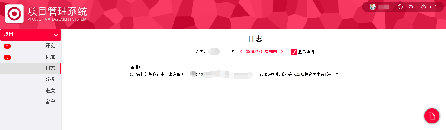 运维:运维人员,在这里填写每天的工作,例如接电话,QQ,现场,文档、培训、意见反馈等