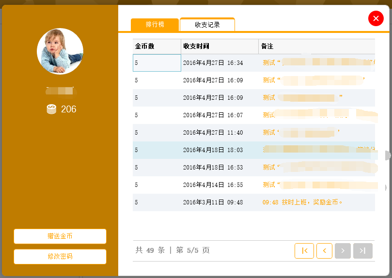 金币激励机制:为了激励员工,做了金币管理,例如测试一个BUG5金币,校验一个2金币,接一个电话2金币,一个文档20金币,按时上班5个金币,等等