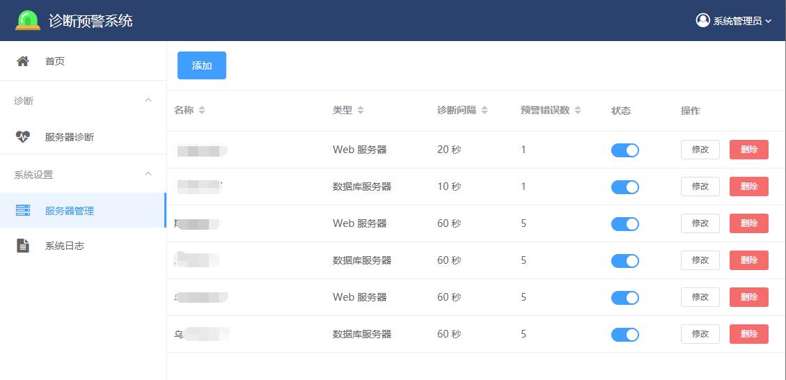 预警查看,故障通知,并且能时时监测本系统是否正常