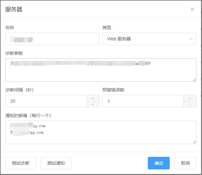 服务器诊断参数为本系统密码工具生成,通知的邮箱可以自行设定